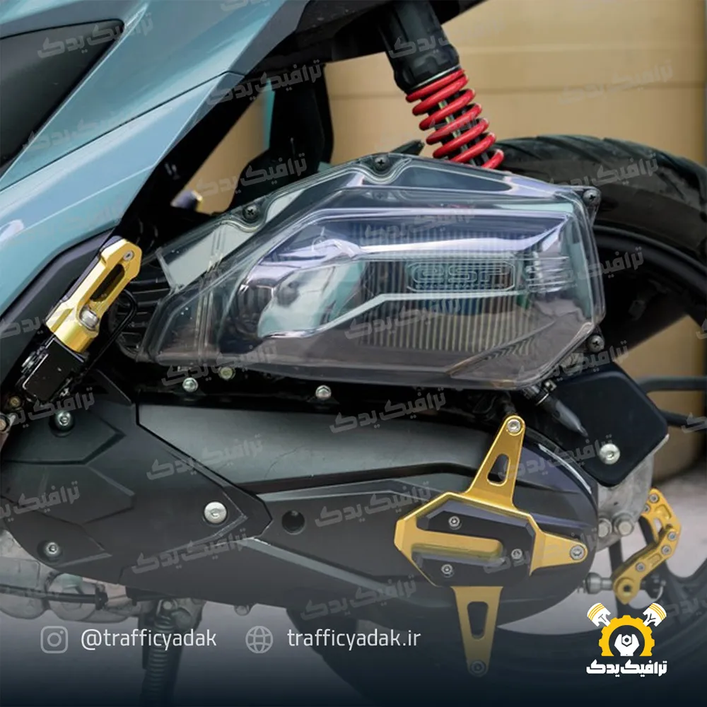 درب هواکش شیشهای مخصوص کلیک از جنس پلیکربنات شفاف و مقاوم تولید شده است؛ قالب آن بهدقت مطابق با ابعاد کارخانهای طراحی شده و بدون نیاز به برش یا تغییر در مدلهای کلیک نصب میگردد. سطح این پوشش پرداخت شده و در مقابل اشعه UV، گرما و ضربه مقاومت مناسبی دارد؛ رنگبندی یا گزینه شفاف آن ظاهری اسپرت و ارتقا یافته به موتورتان میبخشد. |