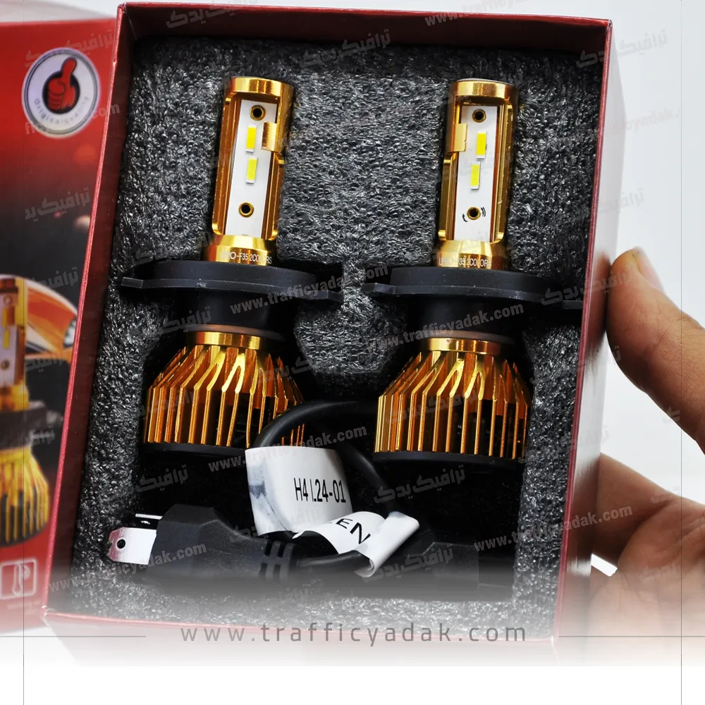 نور دو رنگ سفید و زرد (3000 کلوین و 6000 کلوین) – چیپ CSP – دارای پایه H4 که برای اکثرا موتور سیکلت ها مناسب و قابل نصب می باشد. |